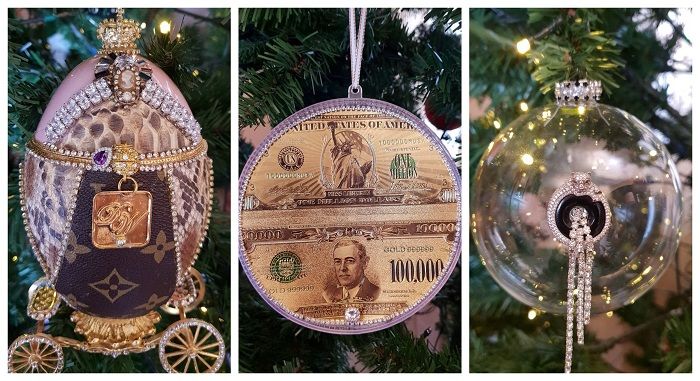 Terdapat pula beberapa perhiasan kaca dari Cartier, dan hiasan yang dihiasi safir bir, berlian dan berbagai ornamen yang digantung pada ranting-ranting pohon itu.