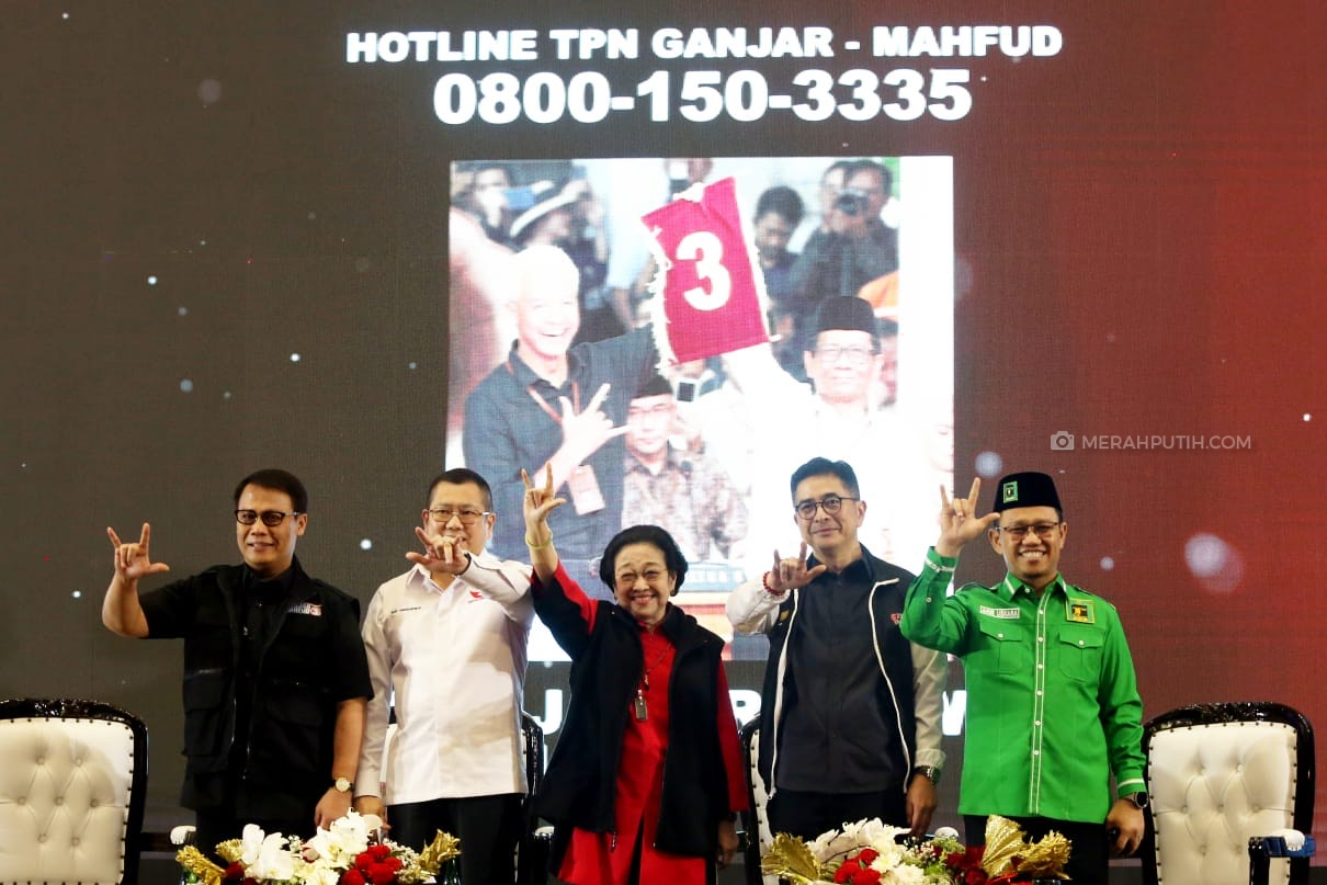 TPN dan Ketum Parpol pengusung Ganjar-Mahfud MD di JIExpo Kemayoran, Jakarta, Senin (27/11). Foto: MP/Ponco