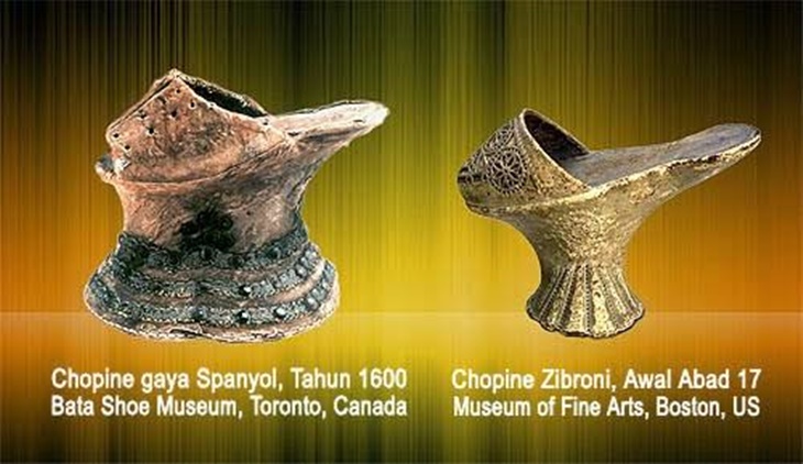 Sepatu jenis itu menjadi populer di Venesia, Italia, dan dipakai oleh kaum perempuan ningrat maupun perempuan penghibur kelas atas. Ukuran chopine dibuat sesuai dengan status pemakainya. Ketika platformnya dibuat sangat tinggi, itu berarti penggunanya seorang dengan status sosial yang tinggi.