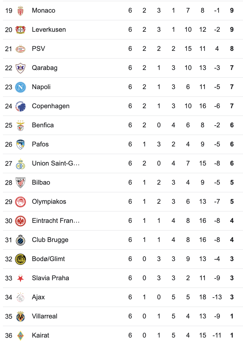 Kini, Juve menduduki urutan ke-17 klasemen sementara dengan sembilan poin dari enam pertandingan.