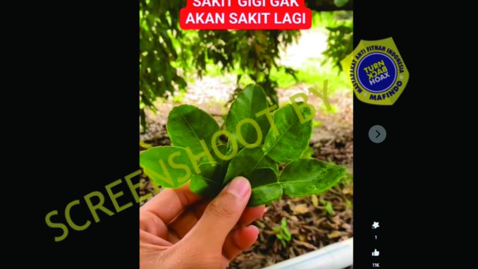 MerahPutih.com - Beredar unggahan di media sosial Facebook yang mengklaim bahwa air rebusan daun jeruk purut bisa menghilangkan sakit gigi seumur hidup. Dalam unggahan tersebut dijelaskan tahapan untuk membuat rebusan daun jeruk.