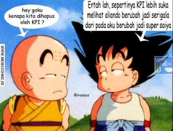 Meme ini cukup menyindir KPI, pasalnya dalam gambar teman Go Ku, Krillin bertanya dengan wajah masam, "Hey Goku mengapa kita dihapus KPI?." tanya anak botak itu, Goku menjawab, "Entahlah sepertinya KPI lebih suka melihat Aliando berubah jadi serigala dari pada aku berubah jadi super saiya," jawab Goku.