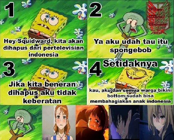 Meme ini menceritakan tentang percakapan Spongebob dan Squidword karena acara mereka mendapat teguran dan terancam tidak tayang.