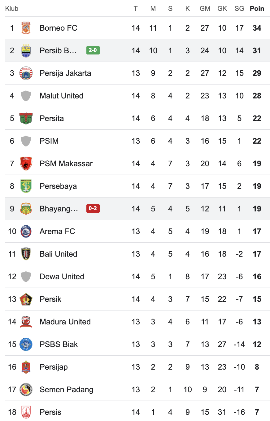 Sementara itu, kekalahan membuat Bhayangkara FC tetap dengan 19 poin di posisi kesembilan.