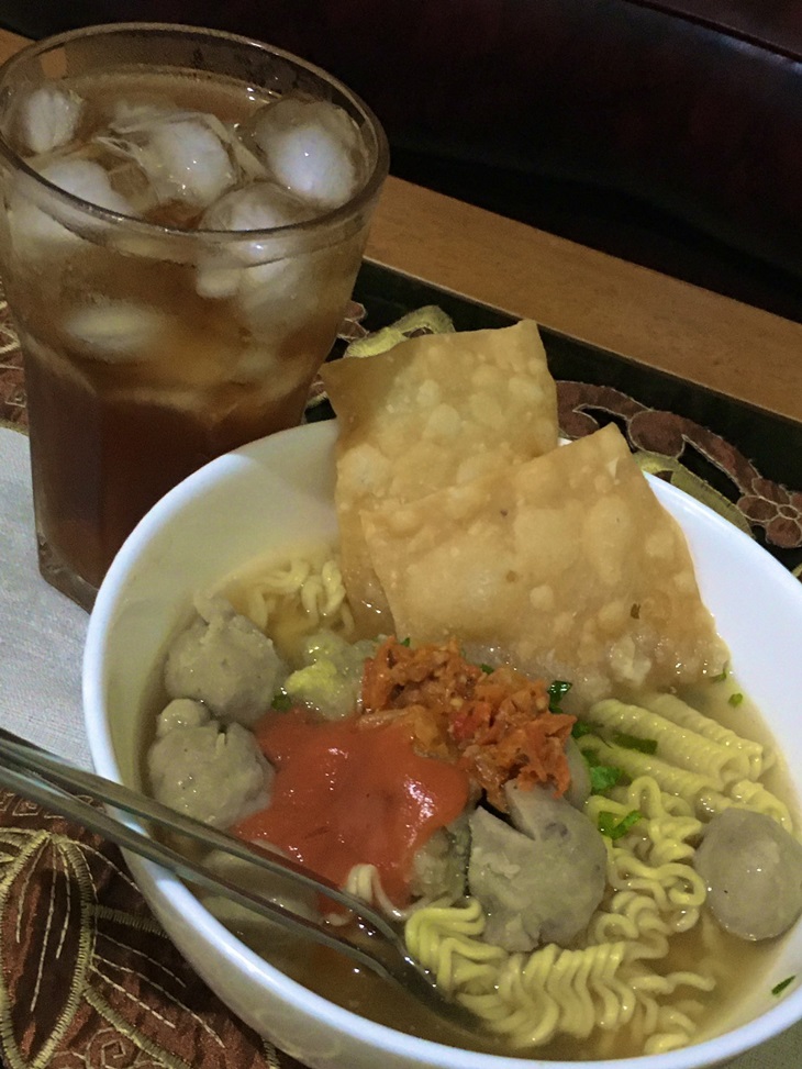 Seporsi bakso memang memiliki harga yang kompetitif untuk berbagai kalangan. Tapi kalau sudah ditambah mi instan, agaknya harganya jadi cukup tinggi kalau anggaran memang sedang pas-pasan. Solusinya, beli saja mi instan di warung atau gunakan stok yang ada di rumah. Abang tukang bakso pasti akan bersedia untuk merebus mi instan yang kamu bawa sendiri.