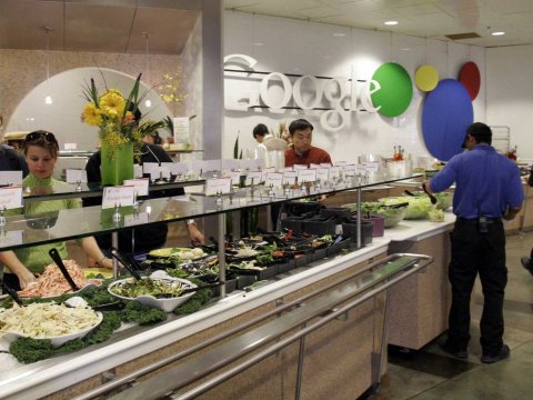 Kantor teknologi besar seperti Google 'memanjakan' pekerja mereka dengan berbagai pilihan makanan yang disajikan di kantin kantor.