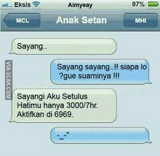 Apa jadinya jika selingkuhan Kalian mengirim sms dan handphone tersebut sedang dipegang oleh suami? Namun, selingkuhan Kalian cukup jenius, dengan pura-pura sebagai operator yang meminta nada sambung pribadi. Gak jadi marah ya..
