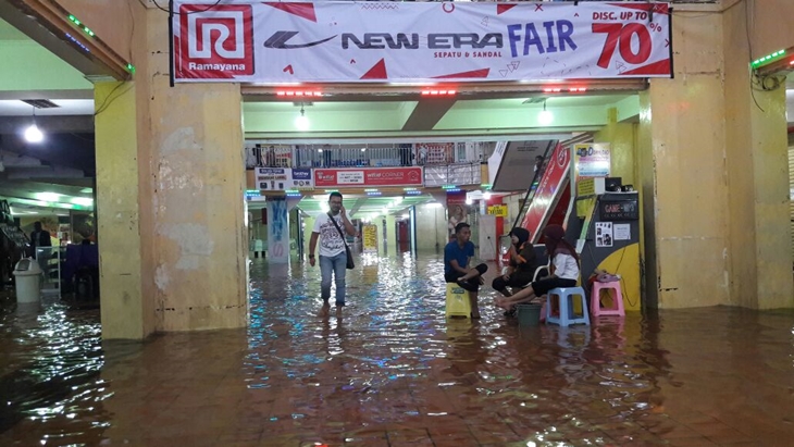 Seperti yang terlihat di HI Tech Mal, Surabaya. Air masuk ke dalam mal hingga ketinggian 5 cm. Karena itu, selain pengunjung tak bisa berbelanja, SPG atau karyawati di beberapa stand mesti kerja keras melakukan bersih-bersih.