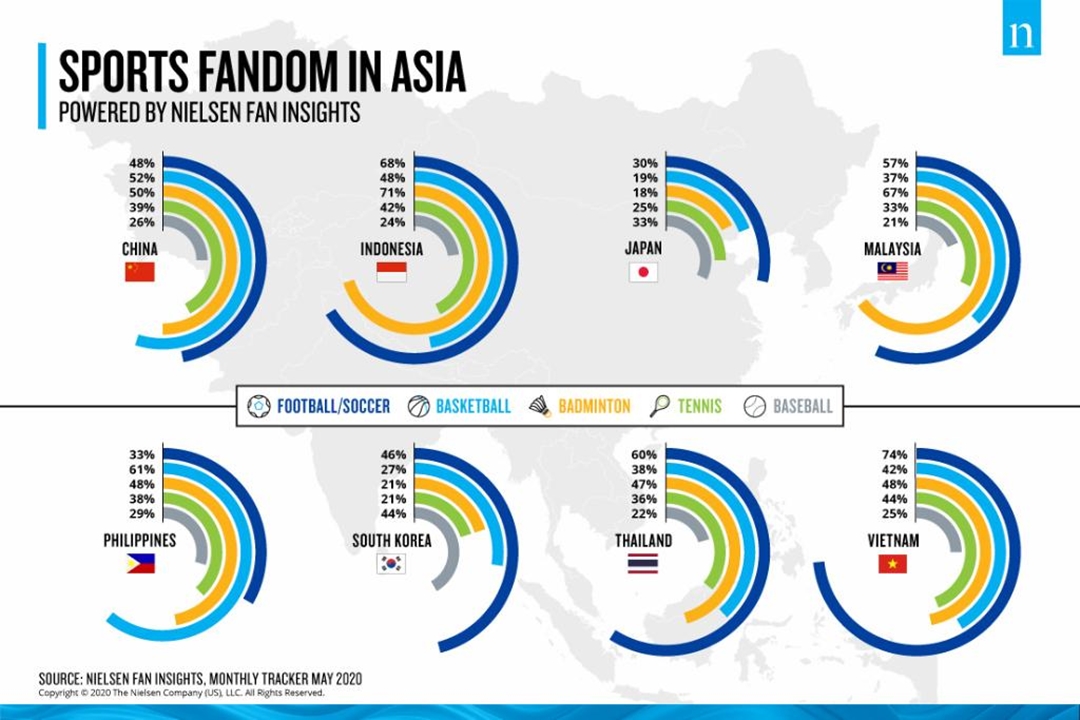 Selanjutnya, sepakbola jadi olahraga berada di posisi kedua teratas pada survei Nielsen dengan raihan 68 persen. Gelaran kompetisi level dunia tentu saja FIFA World Cup bahkan mengundang perhatian para penikmat sepakbola di Indonesia sehingga paling ditunggu. Hingga kini mimpi Timnas Sepakbola Indonesia di level dunia masih terus diupayakan digapai.