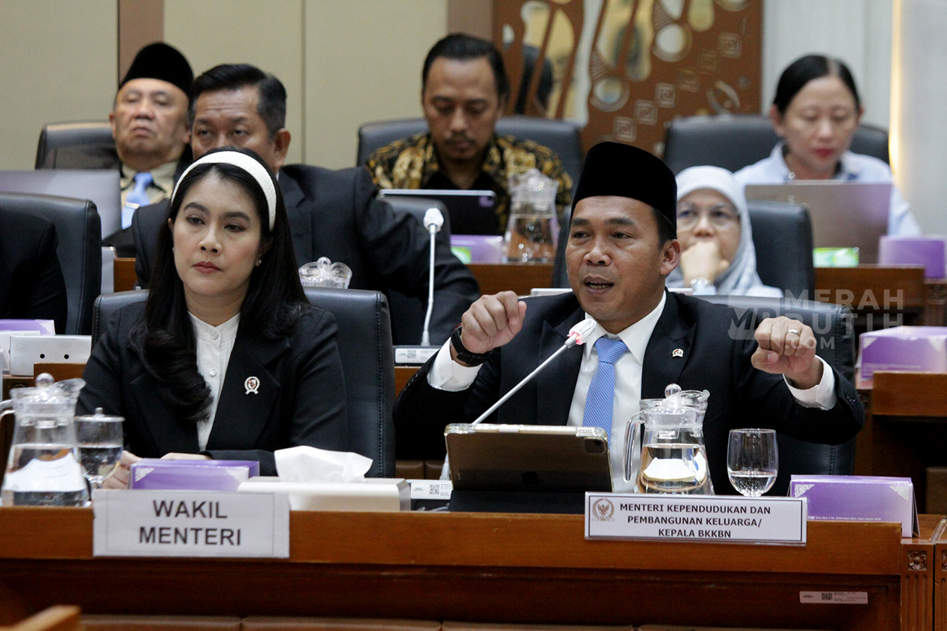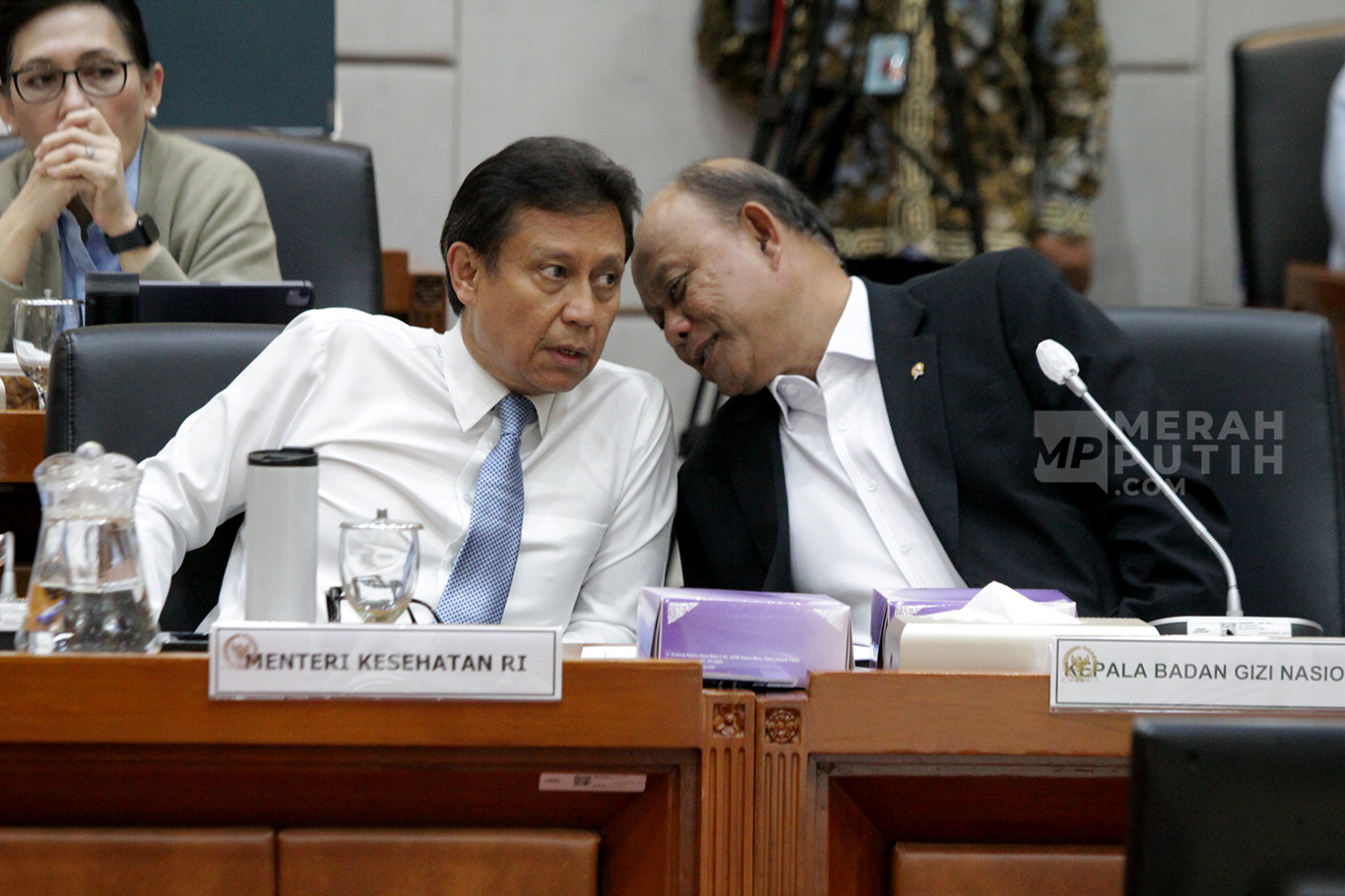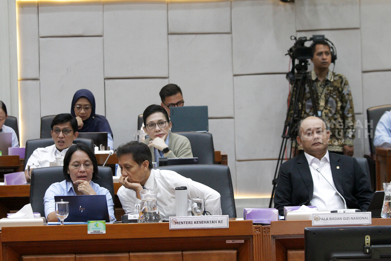 Merahputih.com - Menteri Kesehatan Budi Gunadi Sadikin (kiri), Kepala Badan Gizi Nasional (BGN) Dadan Hindayana dan sejumlah pejabat, mengikuti Rapat Kerja (Raker) dengan Komisi IX DPR, di Gedung Nusantara I, Kompleks Parlemen, Senayan, Jakarta, Rabu (10/1/2025).