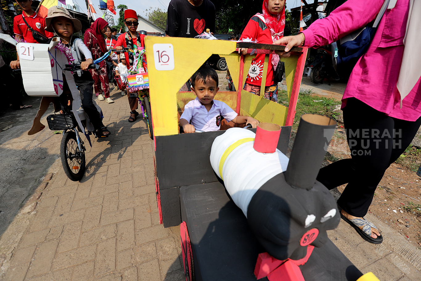 Merahputih.com - Anak-anak dengan penuh keceriaan mengikuti pawai karnaval HUT ke-80 Republik Indonesia di Kawasan Juraganan, Grogol Utara, Jakarta, Sabtu (23/8/2025).
