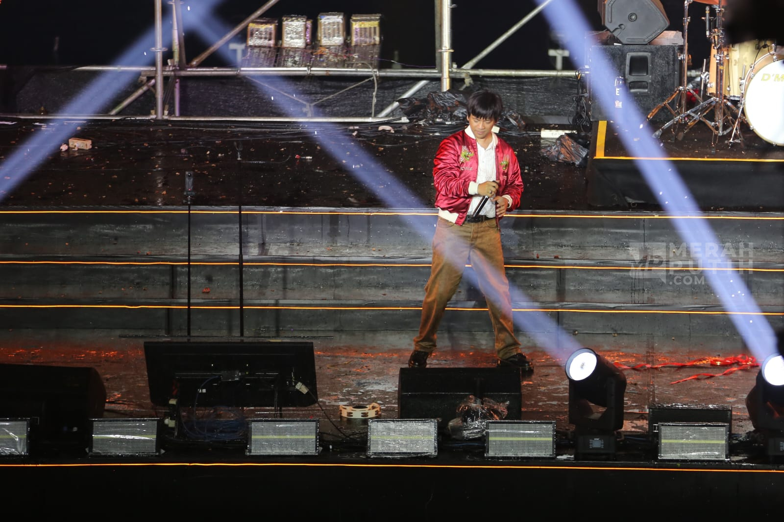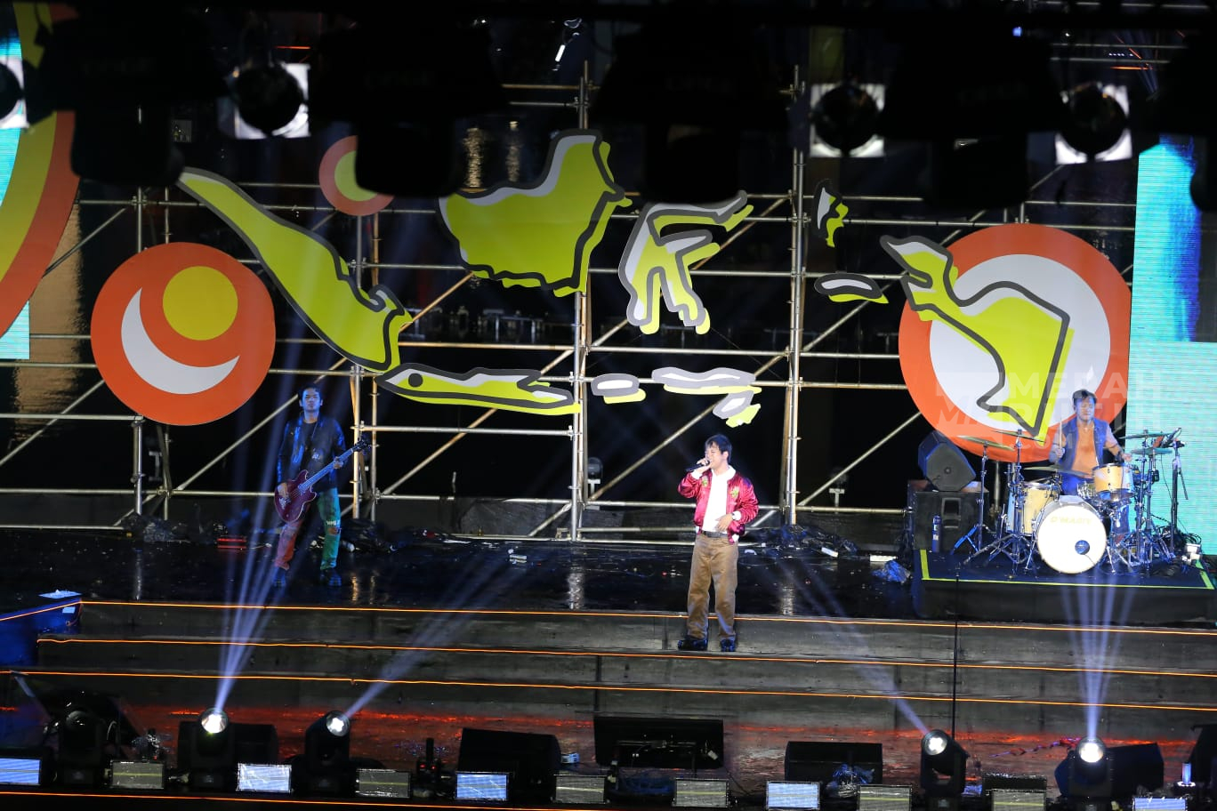 d’Masiv membawakan sejumlah lagu hits mereka, di antaranya Jangan Menyerah, Cinta Ini Membunuhku, dan Diam Tanpa Kata. Aksi panggung Rian yang komunikatif mengajak penonton bernyanyi dan melompat bersama, menciptakan suasana meriah yang menghangatkan detik-detik pergantian Tahun Baru 2026.