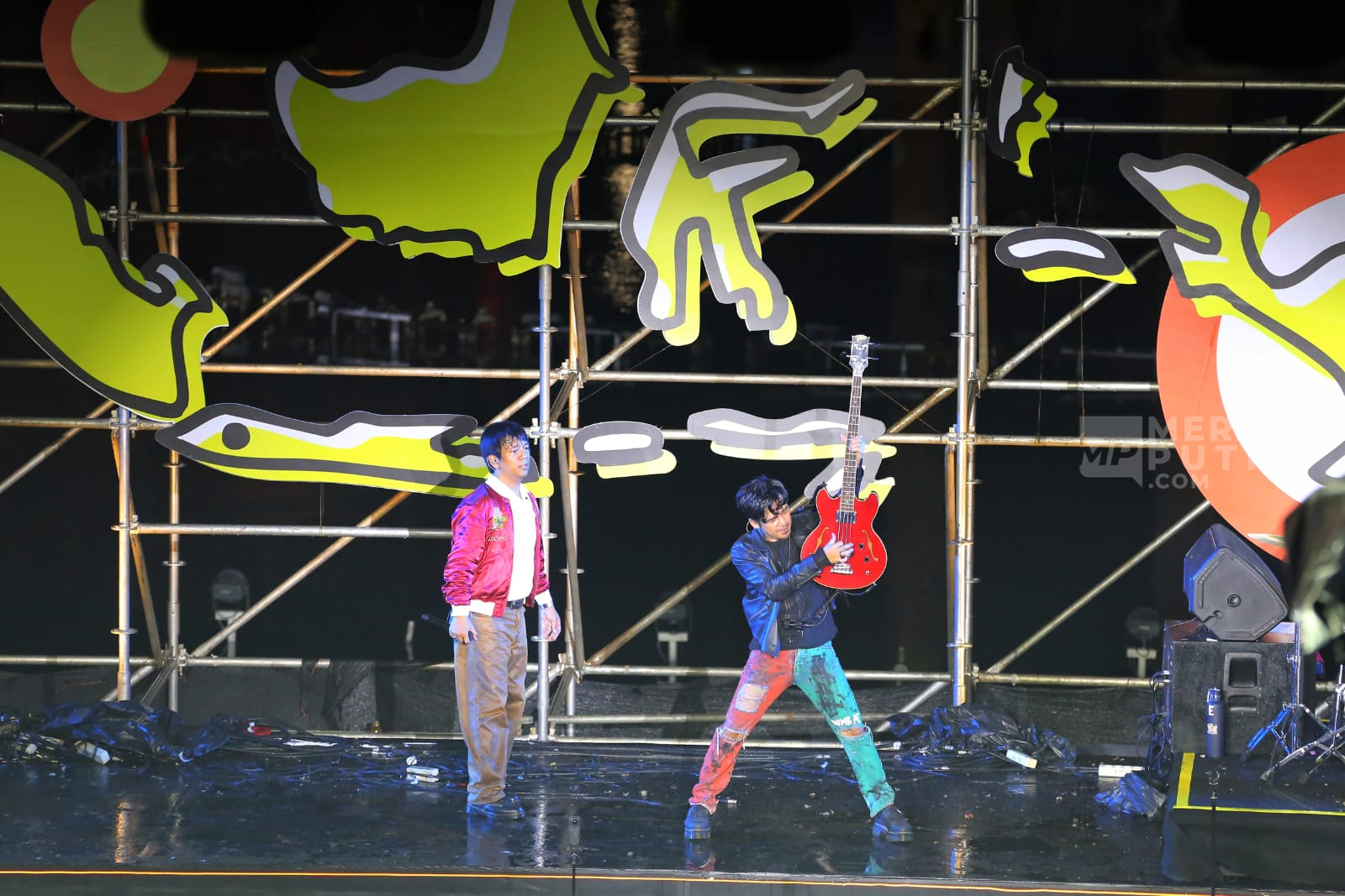 Merahputih.com - Aksi grup band d'Masiv menggebrak panggung utama perayaan malam pergantian tahun baru 2026 di Bundaran HI, Jakarta, Kamis (1/1/2026).