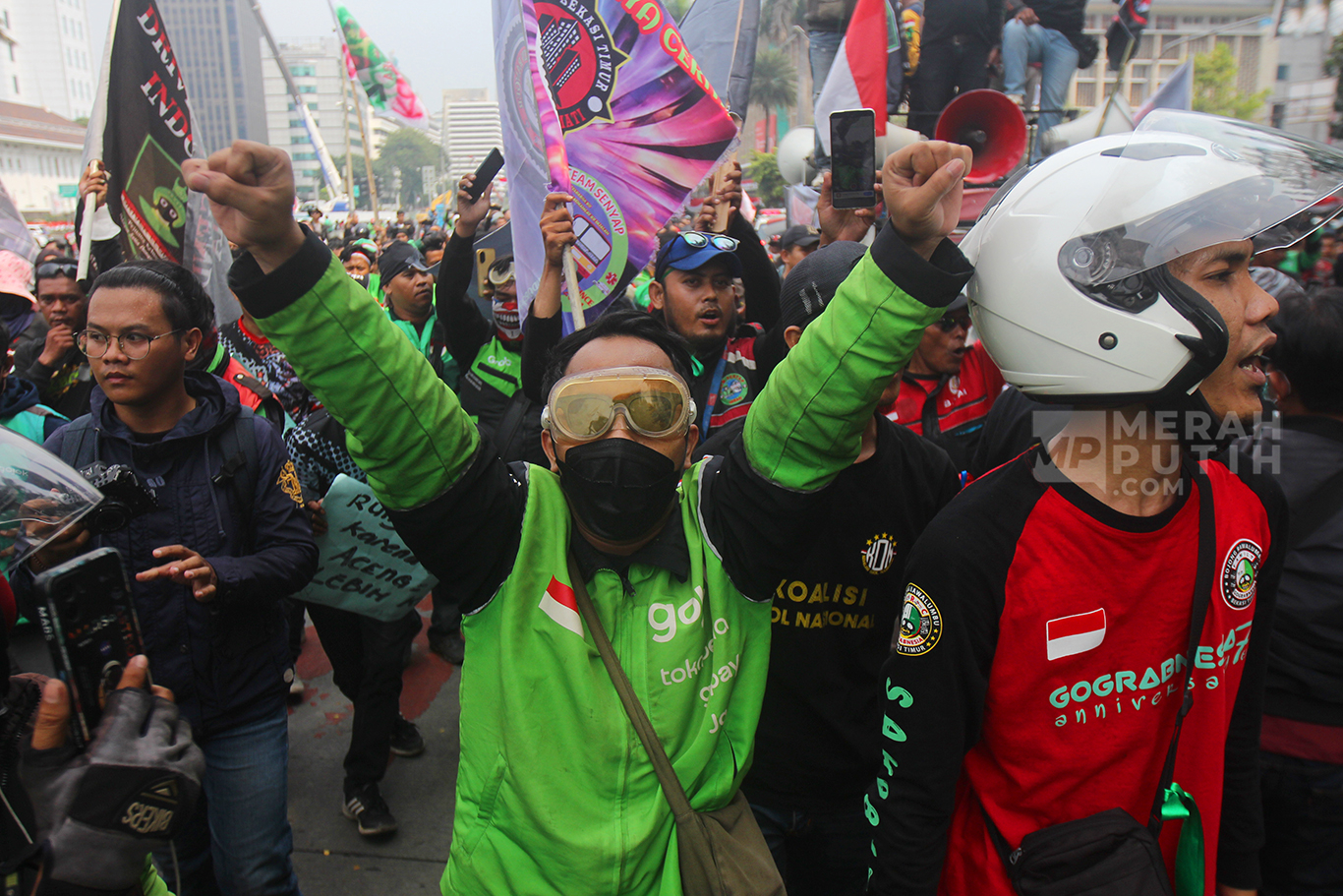 Demonstrasi dimulai di depan Kementerian Perhubungan, Istana Presiden, hingga berakhir Gedung DPR, Jakarta.