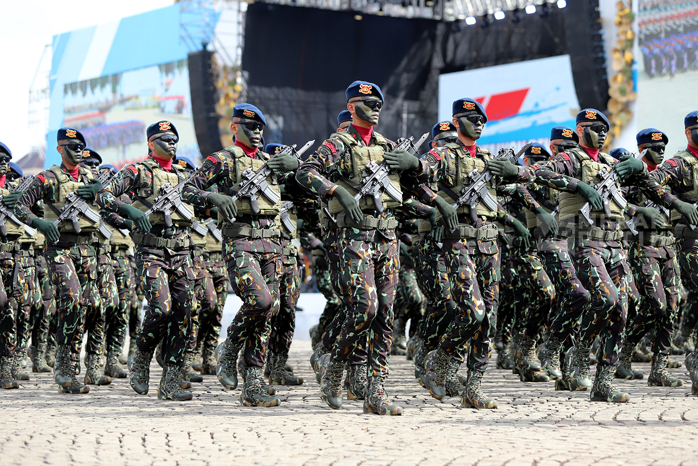 Aksi Parade Defile Personel Polri Semarakkan HUT ke-79 Bhayangkara di Monas Jakarta