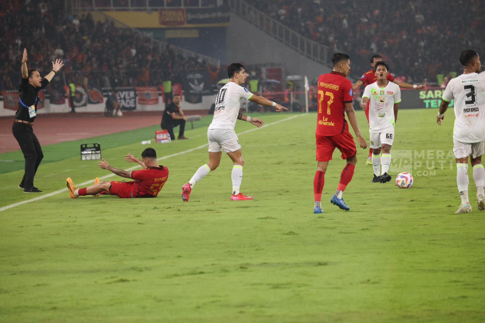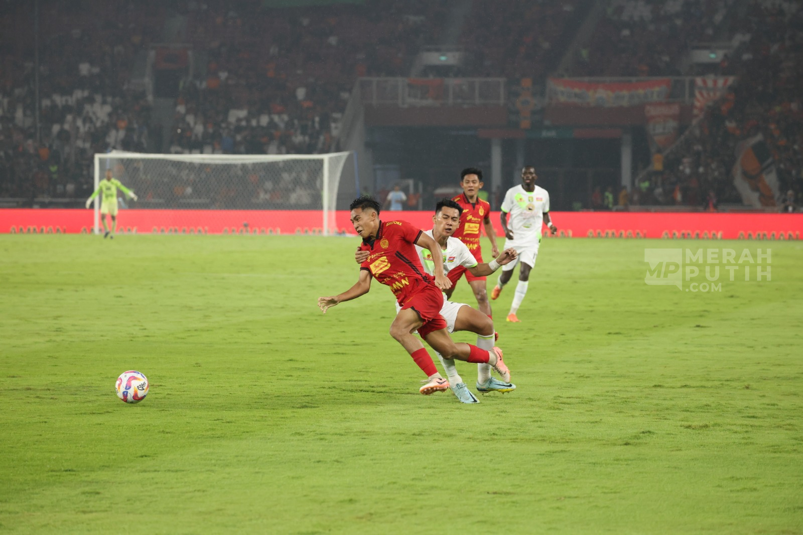 Laga Persija melawan Persebaya harus berakhir imbang dengan skor 1-1 dalam laga Liga 1 di Stadion Utama Gelora Bung Karno (SUGBK), Sabtu (12/4/2025). Gol Persija dicetak oleh Rayhan Hannan di menit ke-62' sedangkan gol Persebaya Surabaya dicetak oleh Flavio Silva pada menit ke-65". Hasil imbang dalam duel tersebut membuat Persija dan Persebaya tidak mengalami perubahan posisi di klasemen. (MP/Didik Setiawan).