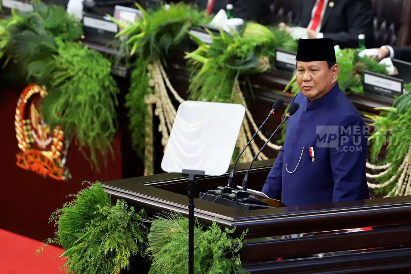 Merahputih.com - Presiden Prabowo Subianto menyampaikan pidato awal masa jabatan Presiden dalam Sidang Paripurna Pelantikan Presiden dan Wakil Presiden RI di Gedung Nusantara, Kompleks Parlemen, Senayan, Jakarta, Minggu (20/10/2024).