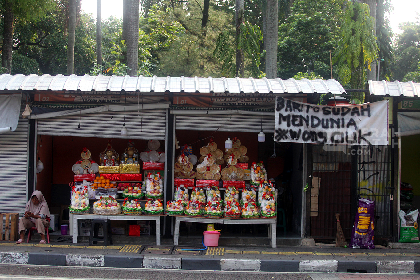 Merahputih.com - Suasana pedangan buah saat menunggu pelanggan di Pasar Burung Barito, Kebayoran Baru, Jakarta Selatan, Rabu (8/10/2025).