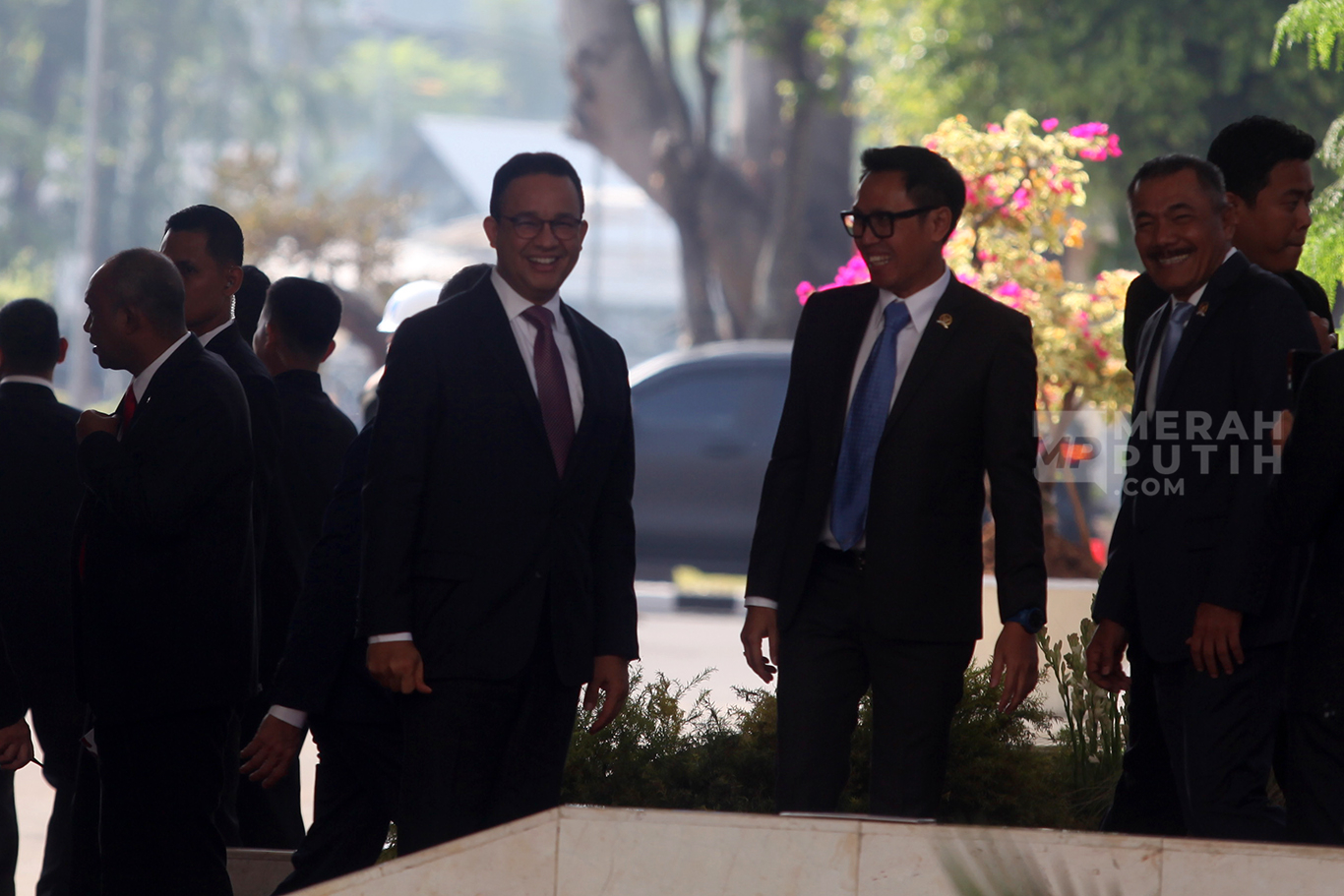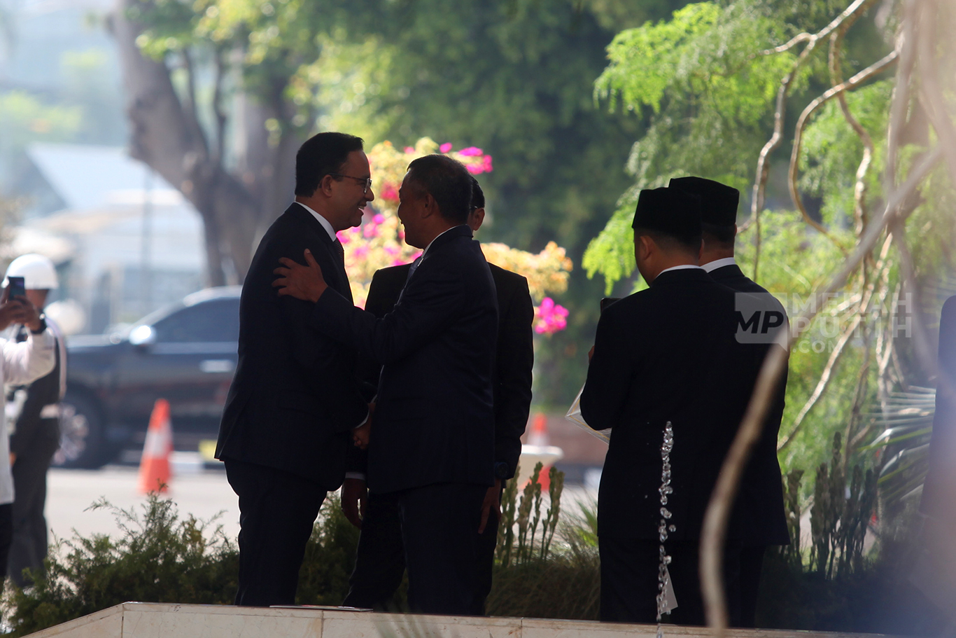 Mantan Gubernur DKI Jakarta Anies Bawedan menghadiri Sidang Paripurna Pelantikan Presiden dan Wakil Presiden RI, Anies Baswedan tampak datang sendiri tanpa ada sosok mantan cawapresnya, Muhaimin Iskandar. Begitu juga dengan capres dan cawapres no urut 3 Ganjar Pranowo dan Mahfud MD tidak tampak dalam acara pelantikan Presiden RI tersebut. (MP/Didik Setiawan).