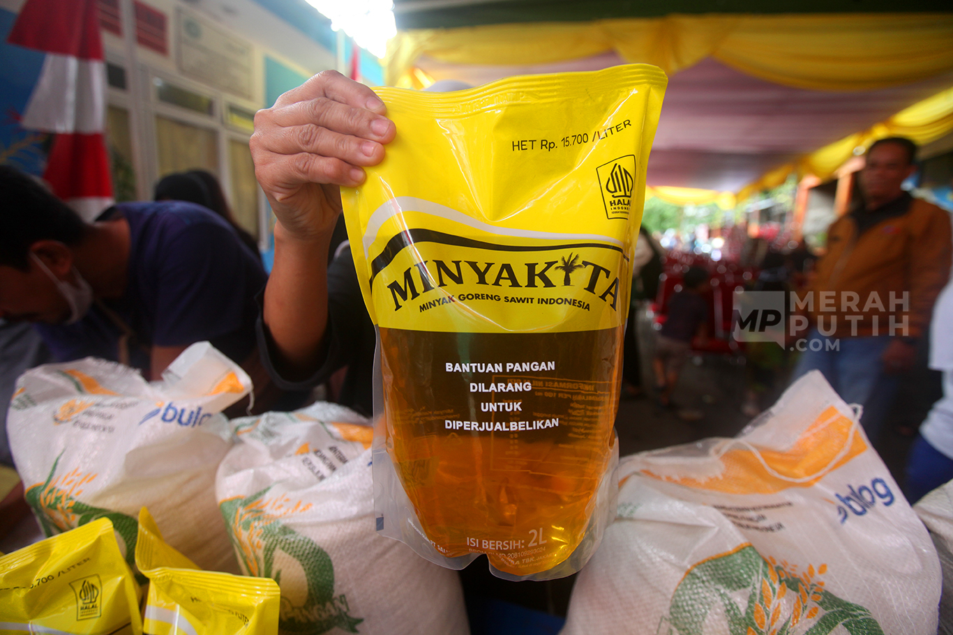 Berbeda dari periode sebelumnya, bantuan pangan kali ini mencakup 10 kg beras dan tambahan 2 liter minyak goreng. Pemerintah mengalokasikan Rp7 triliun untuk bantuan pangan dan Rp500 miliar untuk tambahan minyak goreng, sehingga total anggaran mencapai Rp7,5 triliun. (MP/Didik Setiawan).