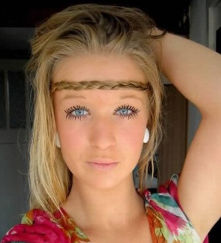 #Kalau Sahabat Merahputih lihat gambar di bawah ini, mungkin tidak ada yang begitu aneh ya? Tapi coba lihat berulang-ulang, perempuan berambut pirang ini menggunakan make up yang terlihat seolah belum sempurna, seperti pada bentuk alisnya yang masih tipis. Namun yang cukup mencolok adalah bagian bulu matanya yang dibuat terlalu lentik.