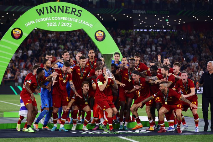 AS Roma juara UEFA Conference League 2021/2022. Foto: Twitter/@europacnfleague