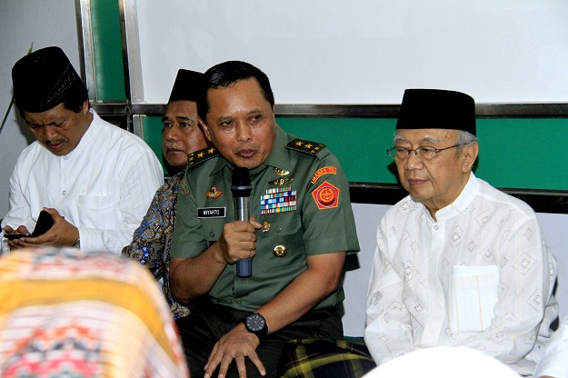 “Insya Allah dengan semangat kebangsaan yang telah disampaikan para Kyai tadi, kedepan kita bergandengan tangan untuk bersilahturahmi menjaga NKRI dan Ukhuwah Islamiyah. Itulah aspek tujuan kami, khususnya dari TNI,” pungkas Mayjen TNI Wiyarto.