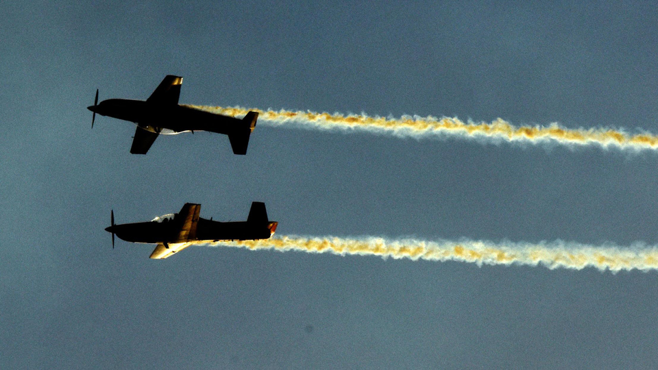 Pesawat tempur Sukhoi dan Jupiter Aerobatic Team TNI Angkatan Udara melakukan atraksi saat memeriahkan pembukaan Makassar International Eight Festival and Forum (F8) 2017 di Anjungan Pantai Losari Makassar, Sulawesi Selatan, Rabu (6/9). Pertemuan F8 yang dihadiri sekitar 60 delegasi dan walikota dari berbagai negara tersebut berlangsung 6-10 September 2017. ANTARA FOTO/Yusran Uccang