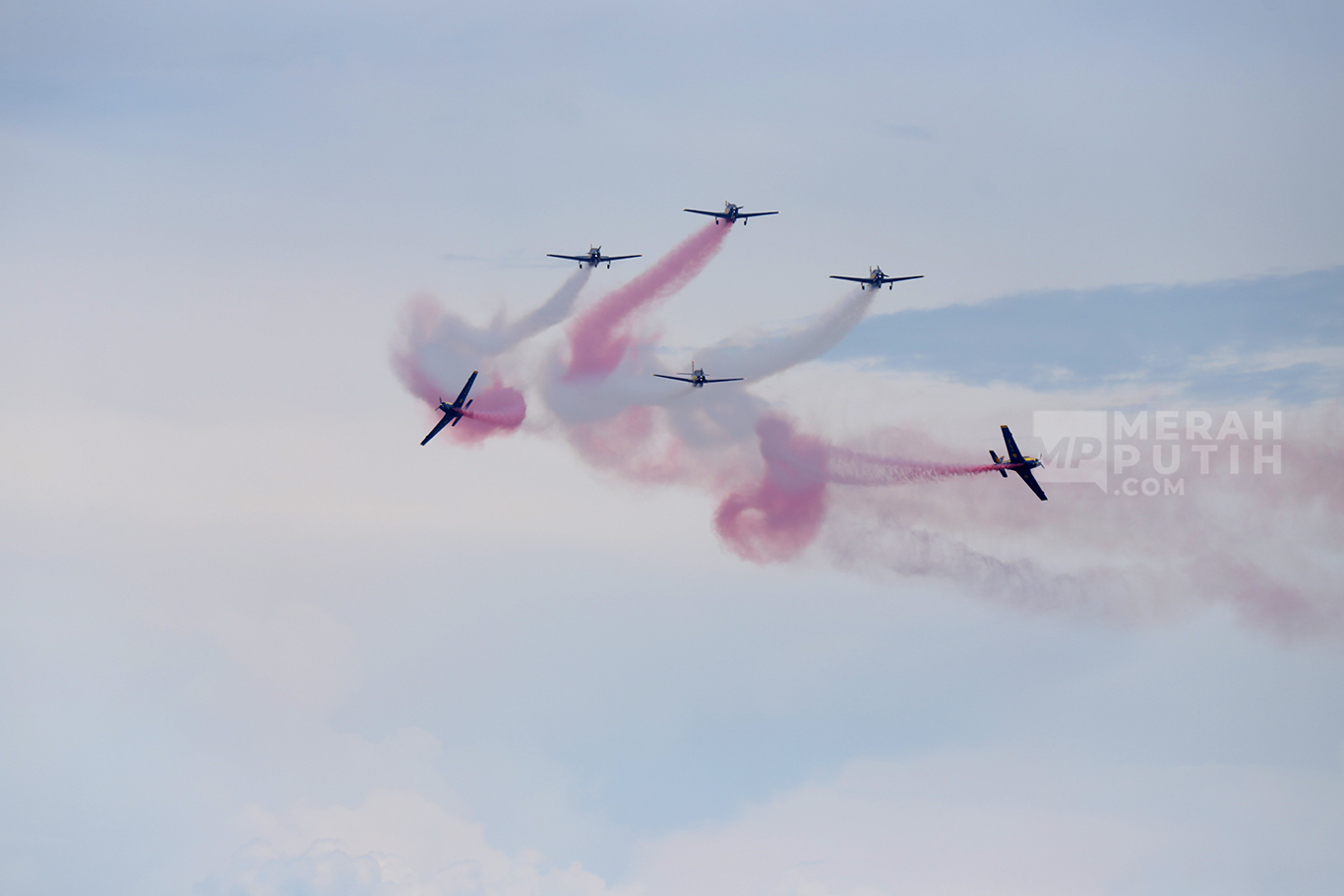 Dalam perayaan Hut ke-80 TNI, TNI AU menyiapkan 156 pesawat yang akan terbang di langit Jakarta. Unsur pesawat tempur, angkut, latih, hingga helikopter TNI AU sudah disiapkan untuk memeriahkan gelaran HUT TNI. (MP/Didik Setiawan).