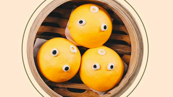 Tapi, bila bakpao ini ditekan dengan sumpit, isian salted egg yolk akan mengucur dari bagian dalam. Mainkan imajinasi Anda. Anda bakal membayangkan wajah yang mengeluarkan salted egg yolk dari mulutya. Ah, jadi gak tega mau makannya!