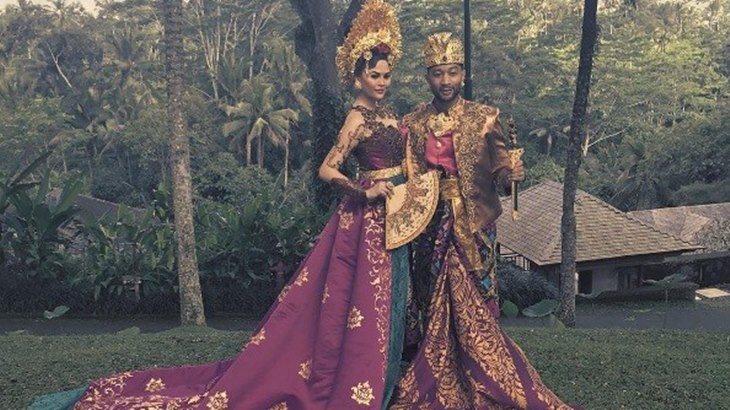 Pasangan selebriti ini menggemparkan netizen dengan foto mesra mereka. Memakai baju adat Bali dengan nuansa ungu. Chrissy kelihatan Indonesia banget dengan riasan ala Bali.
