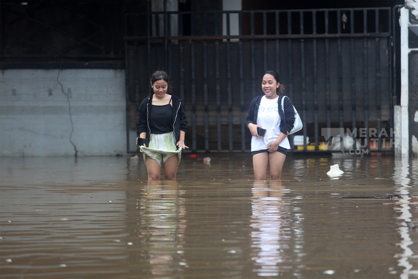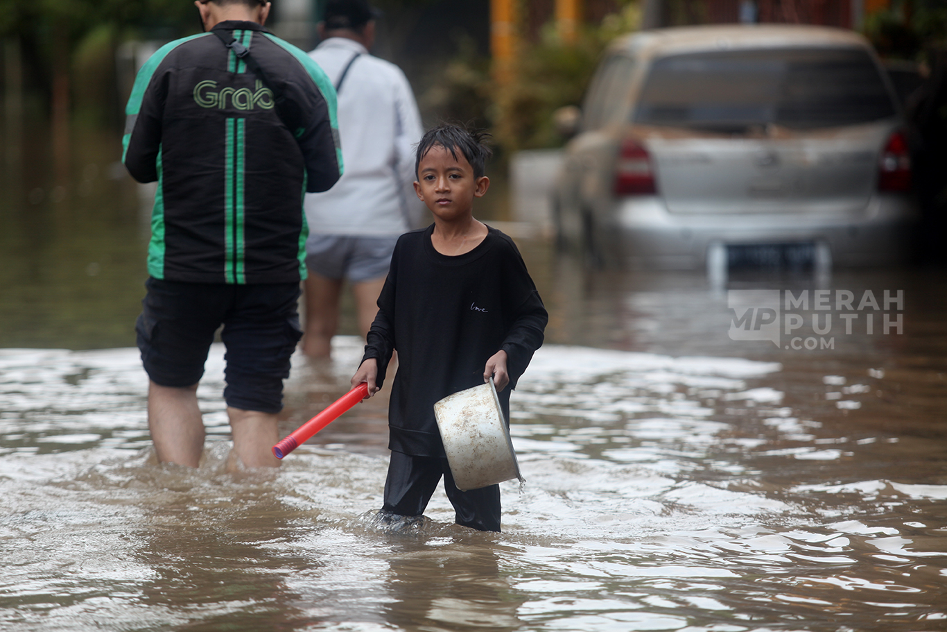 Banjir di Kompleks Ikatan Koperasi Pegawai Negeri (IKPN) yang terjadi sejak Selasa (4/3/2025) hingga siang ini perlahan berlangsung surut. Banjir setinggi satu hingga dua meter di Kompleks IKPN sejak Selasa (4/3) tersebut disebabkan meluapnya Kali Pesanggrahan, Jakarta Selatan. Sebanyak 250 KK terdampak banjir luapan Kali Pesanggrahan Jakarta. (MP/Didik Setiawan).