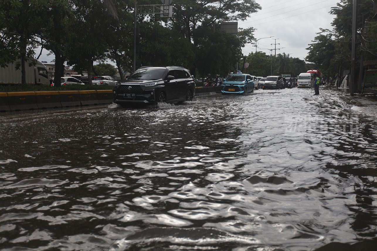Merahputih.com - Suasana antrian kendaraan bermotor melintasi banjir setinggi 50 Cm yang menggenangi Jalan Daan Mogot, Cengkareng, Jakarta Barat, Rabu (29/1/2025). Kondisi banjir menggenangi Jl Daan Mogot Km 13, Cengkareng, Jakarta Barat. Banjir hingga sore hari nampak mulai perlahan surut.