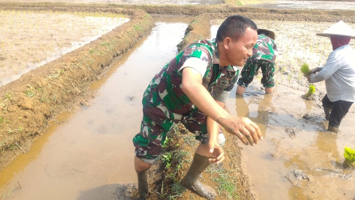 ?Potret anggota TNI menanam padi bersama warga. (Sumber: dokumen pribadi)