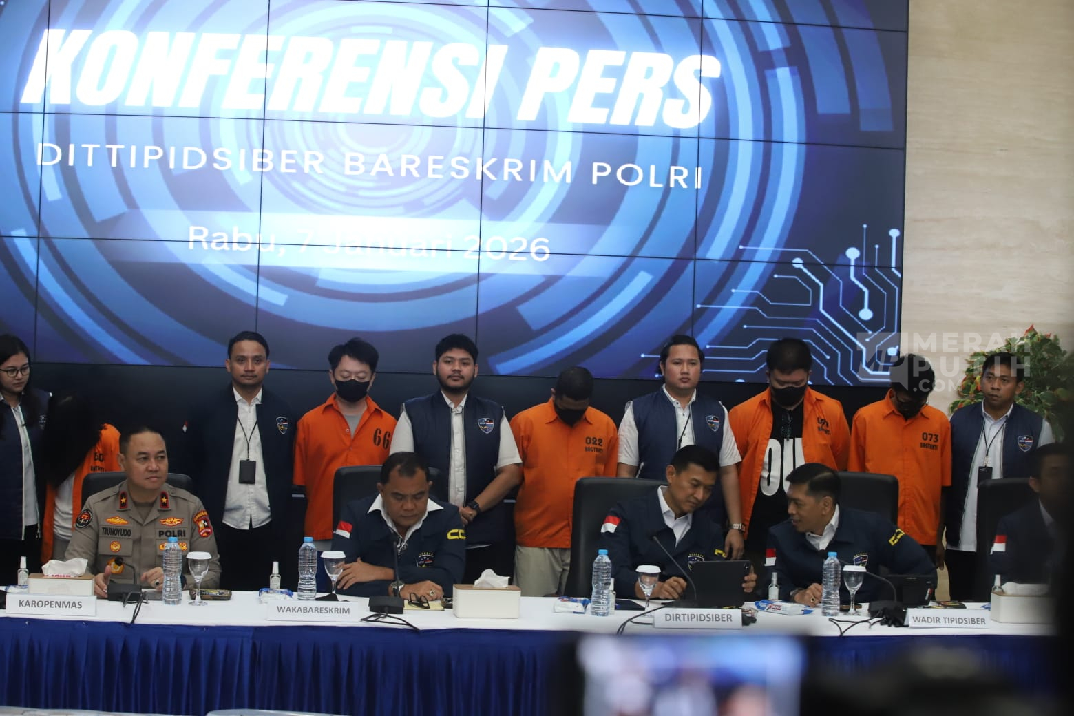 Konferensi pers terkait akses ilegal dan pencucian uang judi online di Gedung Bareskrim Polri, Jakarta, Rabu (7/1/2026).