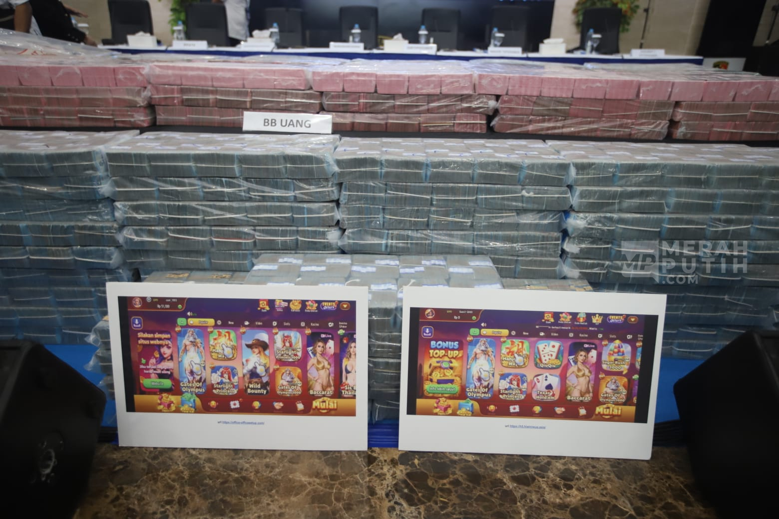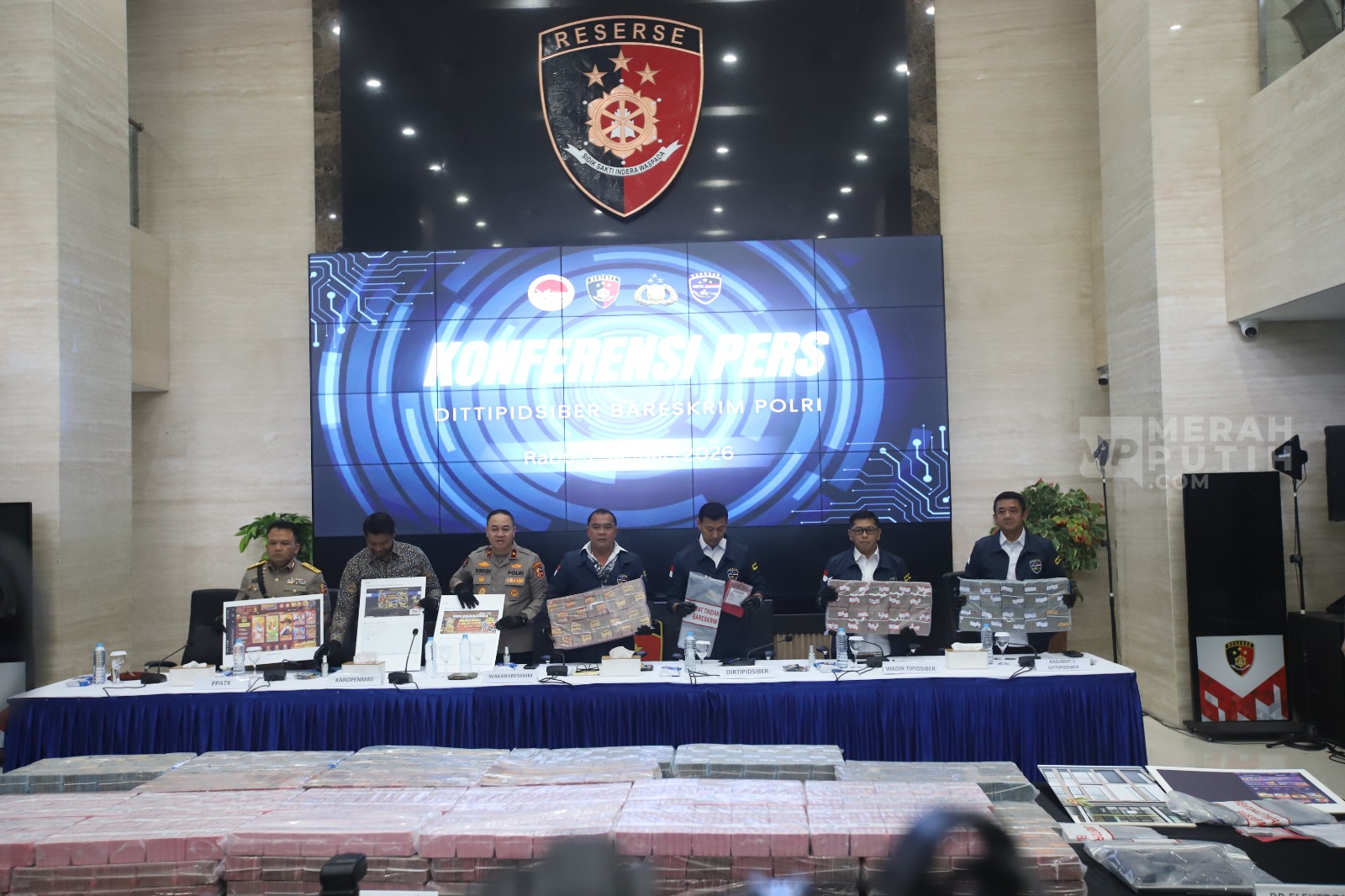 Direktorat Tindak Pidana Siber (Dittipidsiber) Bareskrim Polri membongkar kasus akses ilegal dan pencucian uang yang berasal dari praktik judi online (judol) dengan mengamankan lima orang tersangka serta menyita uang sebesar Rp59 miliar. (Foto: MP/Didik Setiawan).