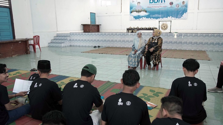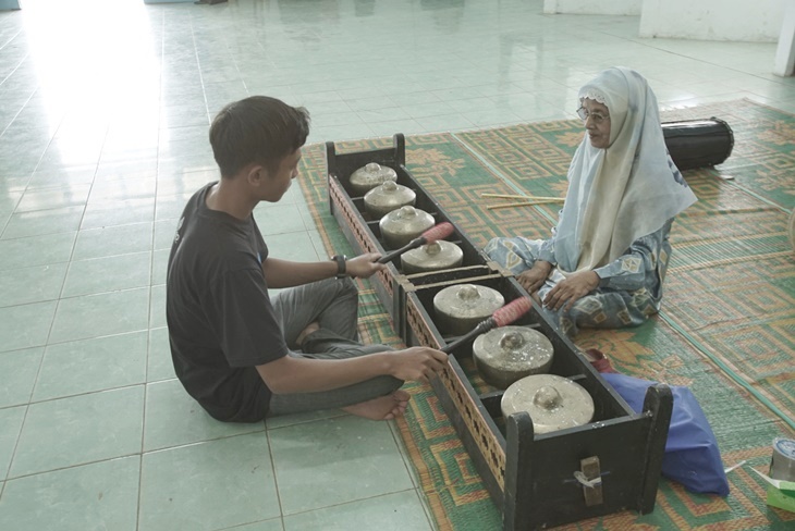 20 pegiat seni budaya muda belajar kelintang perunggu dari sesepuh seniman, Aisyah. (Foto: Kemendibudristek RI)
