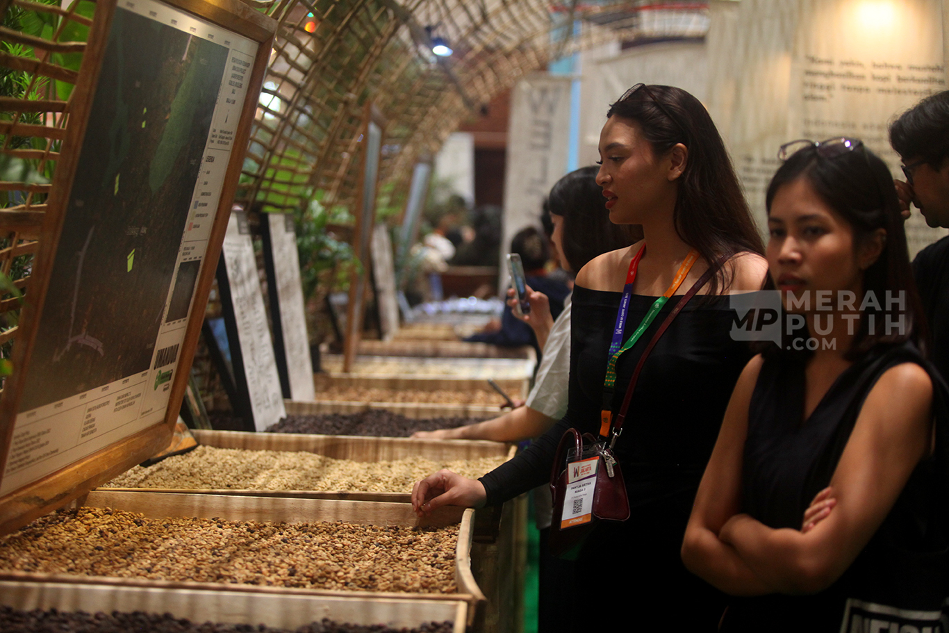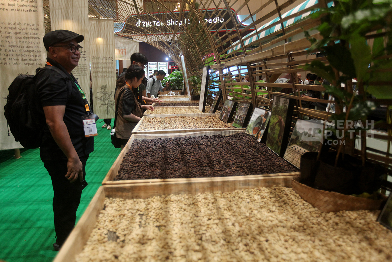 Merahputih.com - Pengunjung mengamati berbagai biji kopi dalam ajang pameran kopi internasional bertajuk World of Coffee Jakarta 2025 di Jakarta International Convention Center (JICC), Senayan, Jakarta, Jum'at (16/5/2025).