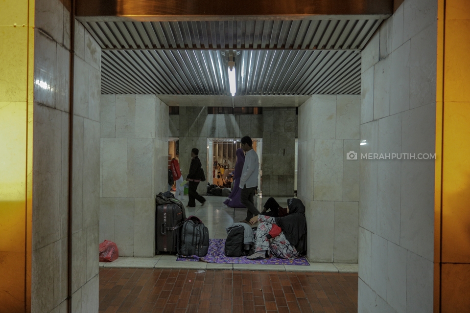 Tidak sedikit jamaah yang menginap hingga beberapa hari untuk melakukan I'tikaf pada 10 malam terakhir di bulan Ramadan dengan membawa sejumlah perlengkapan dengan menggunakan tas hingga koper. Merahputih.com / Rizki Fitrianto