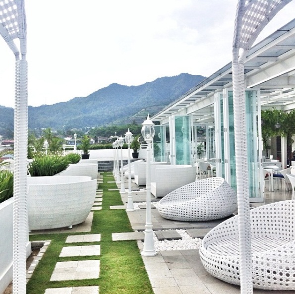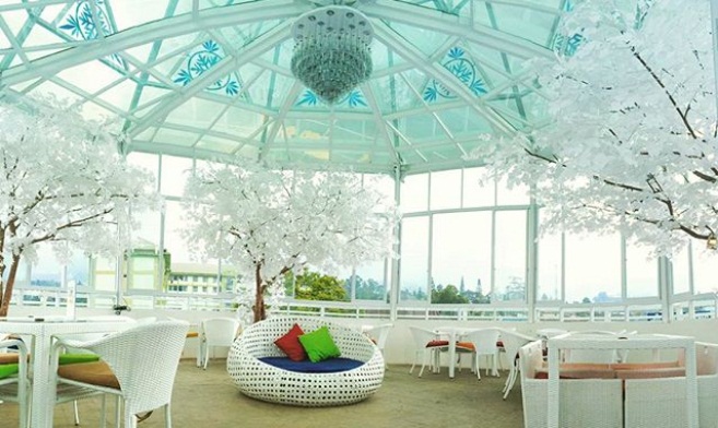 Selain bangku lucu bernuansa putih-putih, adapula beberapa gazebo dengan warna seragam yang sangat nyaman untuk bersantai menikmati pemandangan alam seraya mencicipi hidangan yang lezat.