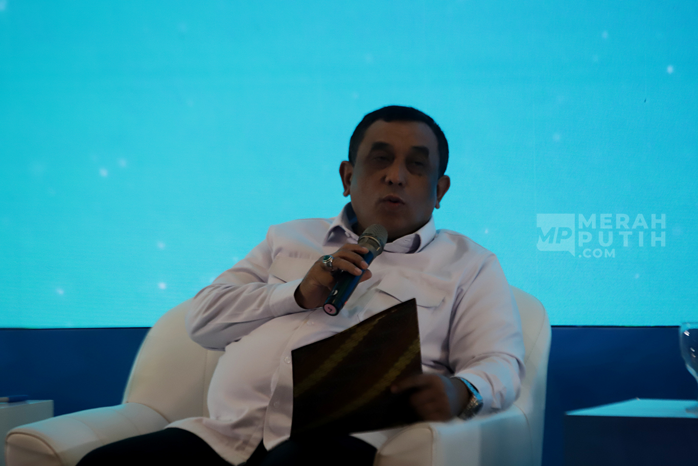 Merahputih.com - Deputi Promosi dan Kerja Sama Badan Gizi Nasional (BGN), Nyoto Suwignyo (kedua kanan) memberikan pemaparan dalam Diskusi Bahas Rantai Pasok Pangan Bergizi di Tangerang Selatan, Senin (24/11/2025).