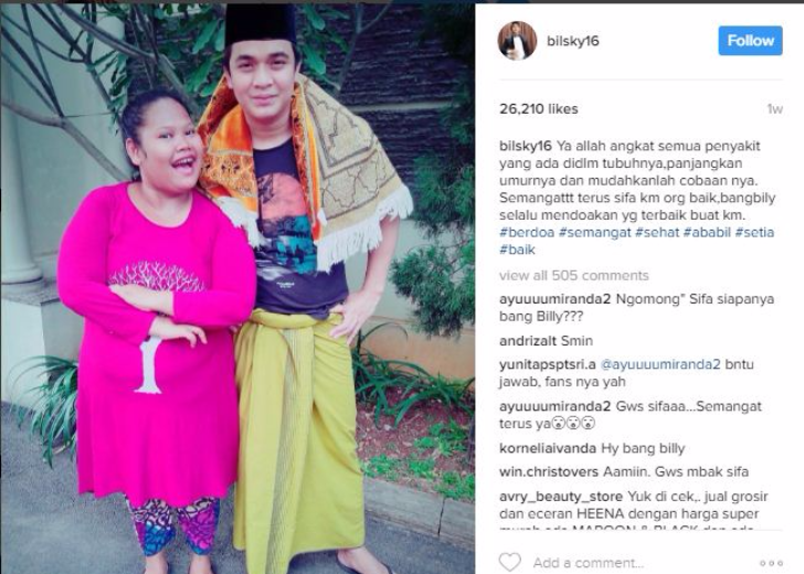 "Ya allah angkat semua penyakit yang ada didlm tubuhnya,panjangkan umurnya dan mudahkanlah cobaan nya. Semangattt terus sifa km org baik,bangbily selalu mendoakan yg terbaik buat km. #berdoa #semangat #sehat #ababil #setia #baik
