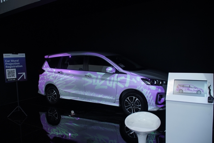 Pengunjung booth Suzuki di GIIAS 2023 dapat mencoba serangkaian kegiatan interaktif yang disediakan seperti mendesain mobil Suzuki lewat Mural Projection Art Installation, dimana pengunjung dapat menguji kreativitas dan menuangkannya langsung ke dalam desain bodi mobil Suzuki.