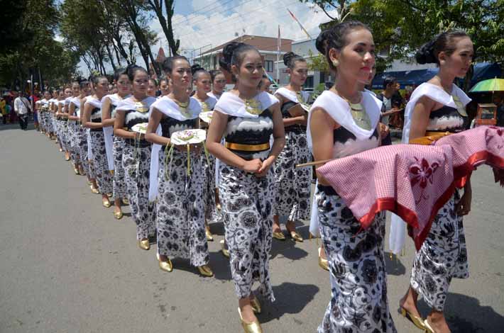 Gadis-gadis cantik berpakaian tradisional dalam prosesi adat "Boyong Grobog". (FOTO Antara/Yusuf Nugroho)