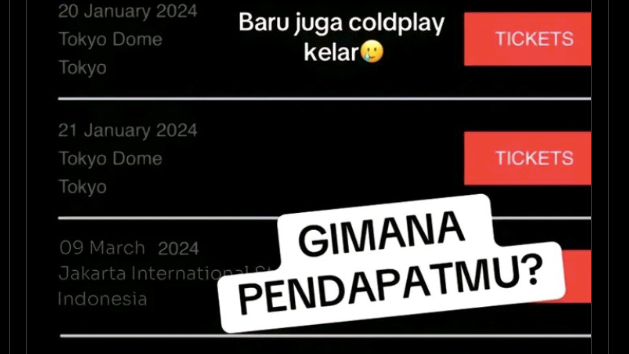Dalam unggahannya pada hari Sabtu (18/11), terlihat jadwal konser Bruno Mars yang akan digelar di Jakarta International Stadium (JIS) pada 9 Maret 2024. “INI KALO BENERAN BYE DULU LIST CONCERT YG LAIN SAY HELLO DULU KE BRUNO MARS HIKS,” begitu cicitannya.