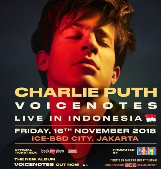 Konser yang sudah dinanti-nantikan oleh para Puthinators, sebutan penggemar Charlie Puth, akan digelar di ICE, BSD City, Jakarta pada hari Jumat 16 November 2018 pukul 20.15 WIB.