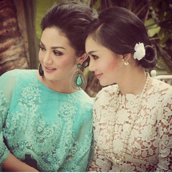 Jika KD mengenakan dress hijau tosca, Yuni lebih memilih mengenakan busana berwarna putih nan cantik.