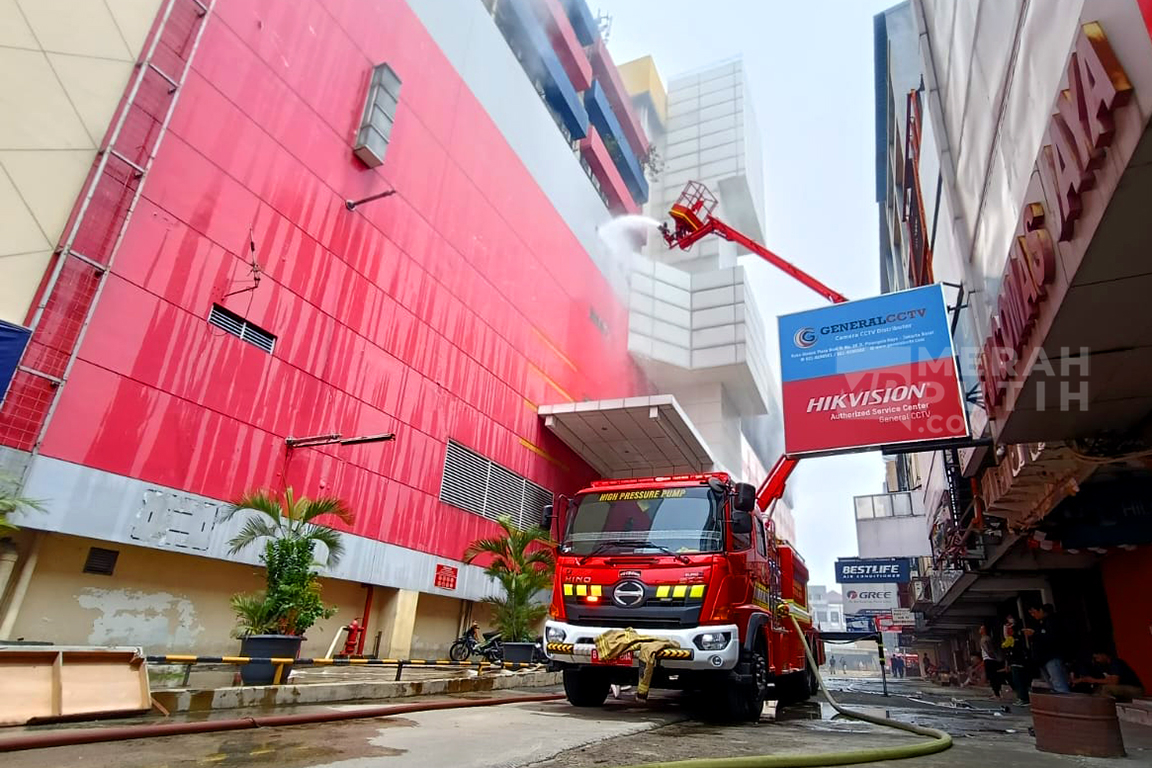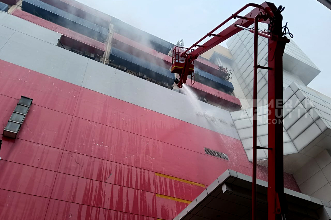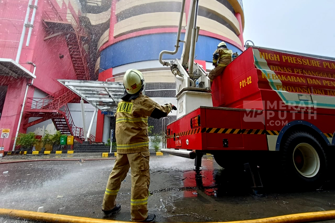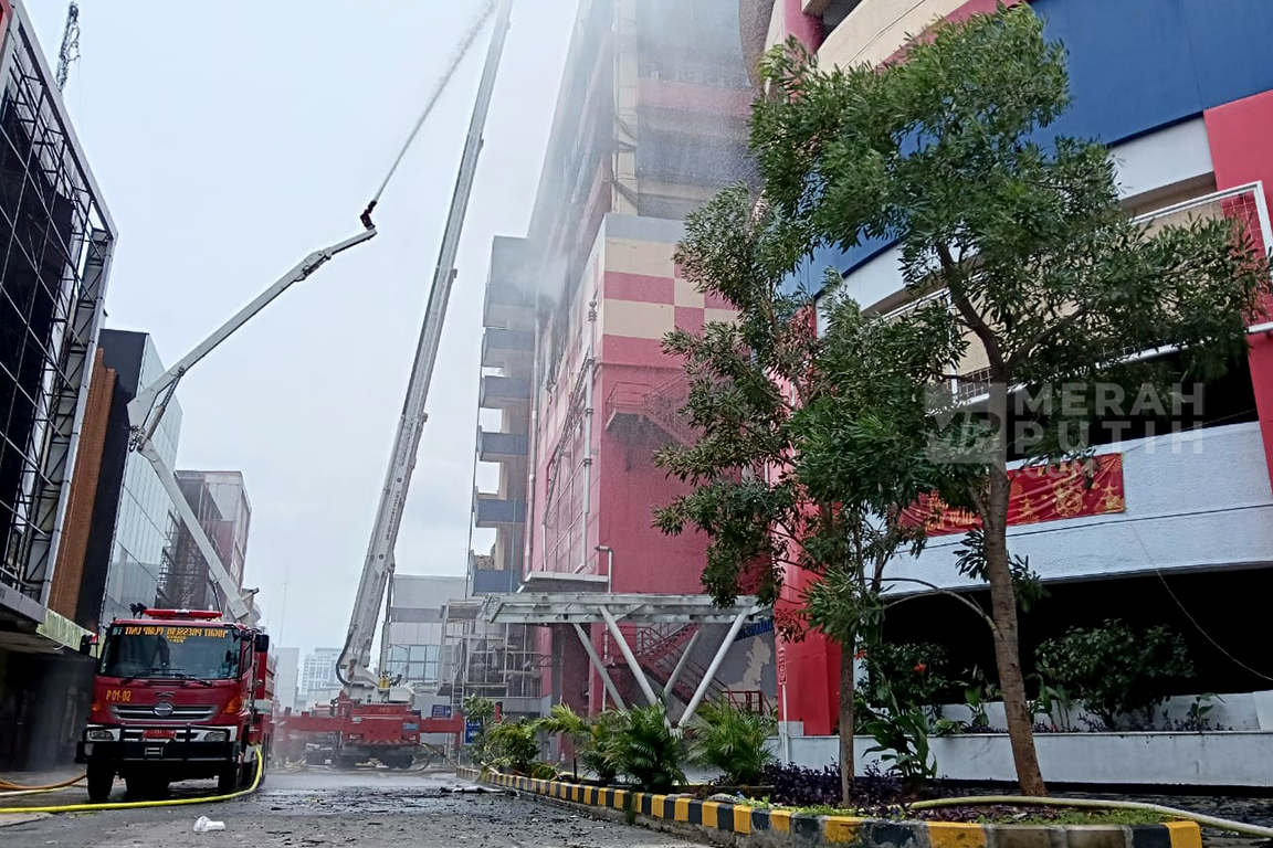 Merahputih.com - Pemadam kebakaran pendinginan sisa kebakaran di Gedung Glodok Plaza, Taman Sari, Jakarta Barat, Kamis (16/1/2025). Petugas pemadam kebakaran (damkar) mulai melakukan proses pendinginan di lokasi kebakaran Glodok Plaza, Jakarta Barat.