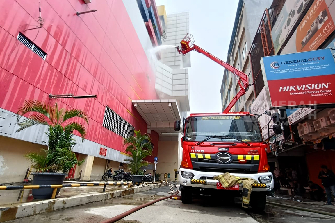 Damkar Lakukan Pendinginan Sisa Kebakaran Gedung Glodok Plaza Jakarta