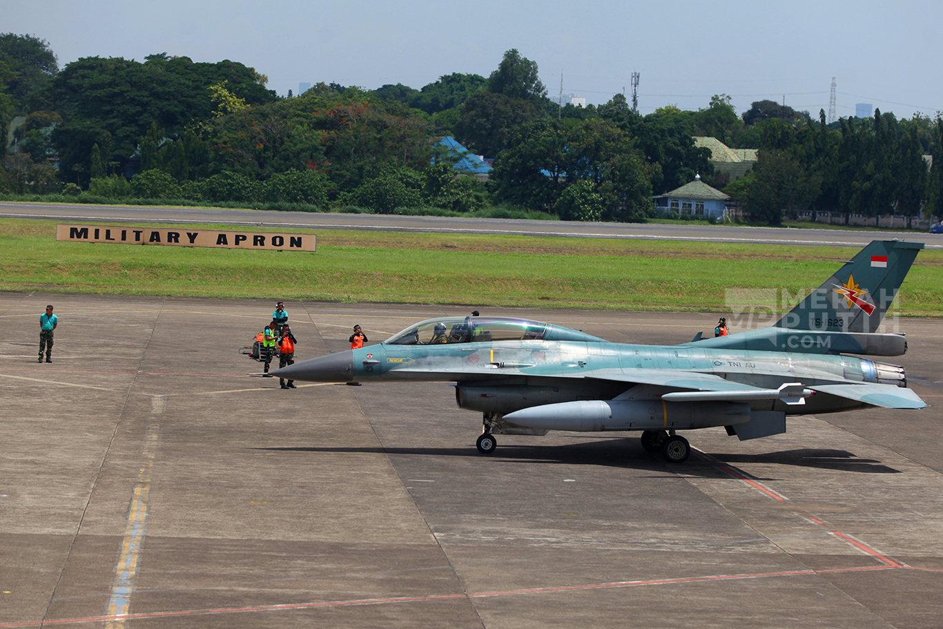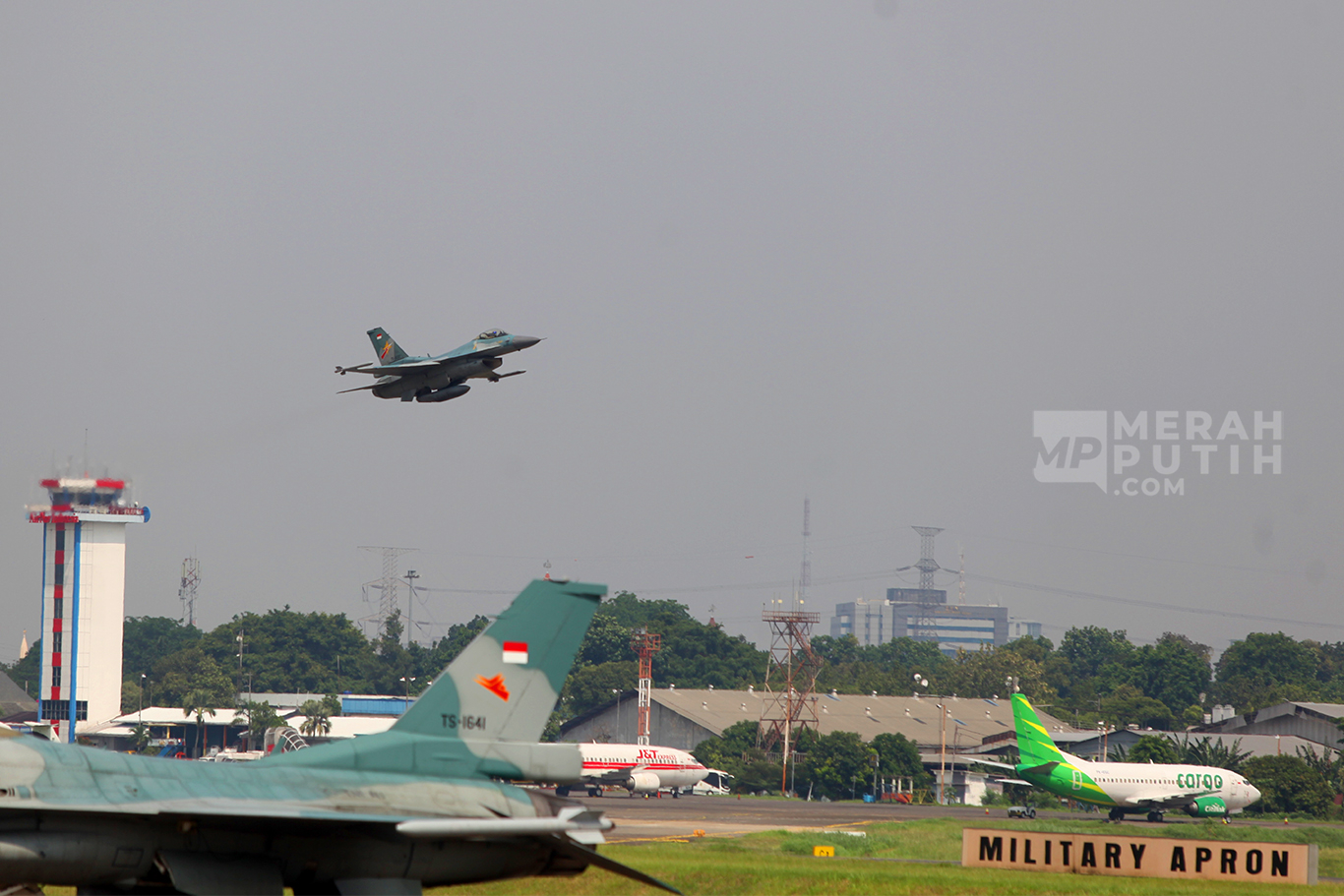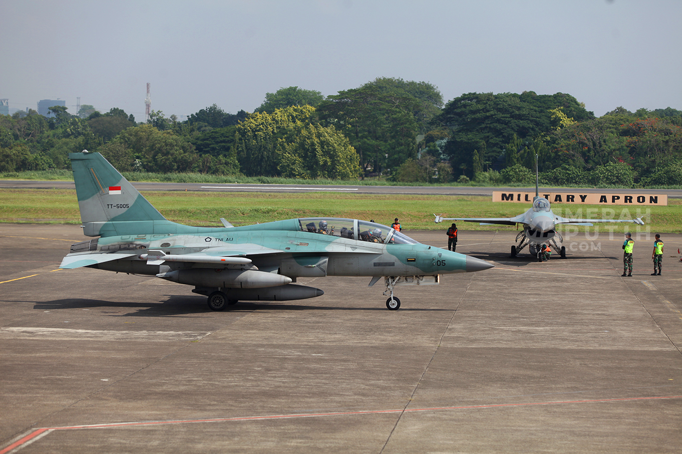 Pesawat tersebut berasal dari beberapa skuadron seperti Skuadron 14 Lanud Iswahjudi untuk T-50 Golden Eagle, Skuadron 11 dari Lanud Sultan Hassanudin untuk Su-27 dan Su-30, Skuadron 16 Lanud Roesmin Nurjadin dan Skuadron 15 Lanud Iswahjudi untuk F-16 Fighting Falcon, Skuadron 12 Lanud Roesmin Nurjadin dan Skuadron 1 Lanud Supadio untuk pesawat tempur hawk.